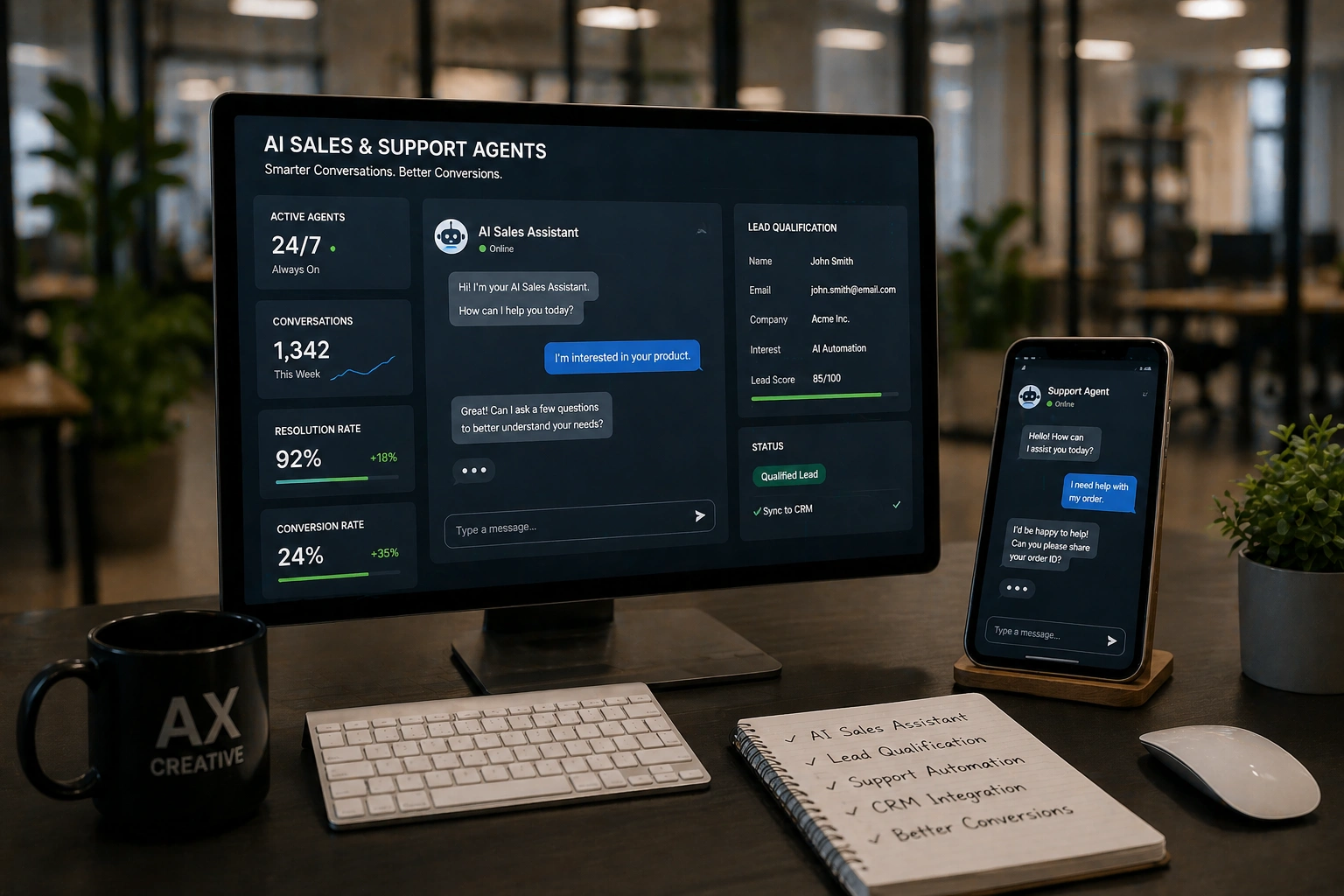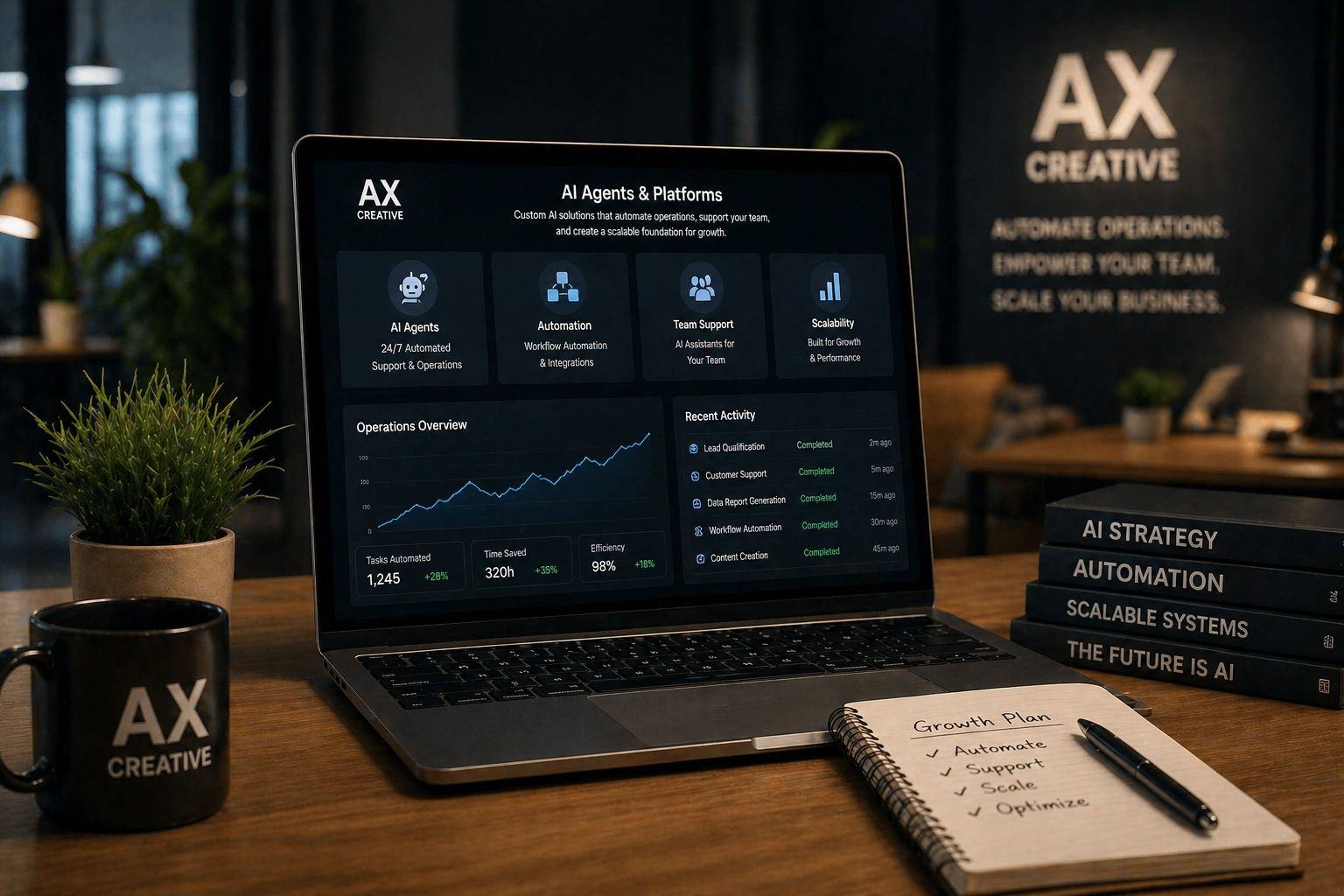 Partner with AX Creative to build custom AI agents and platforms that automate operations, support your team, and create a scalable foundation for growth.