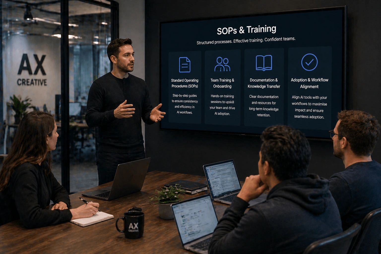 We ensure your team can effectively use AI through clear SOPs and training.