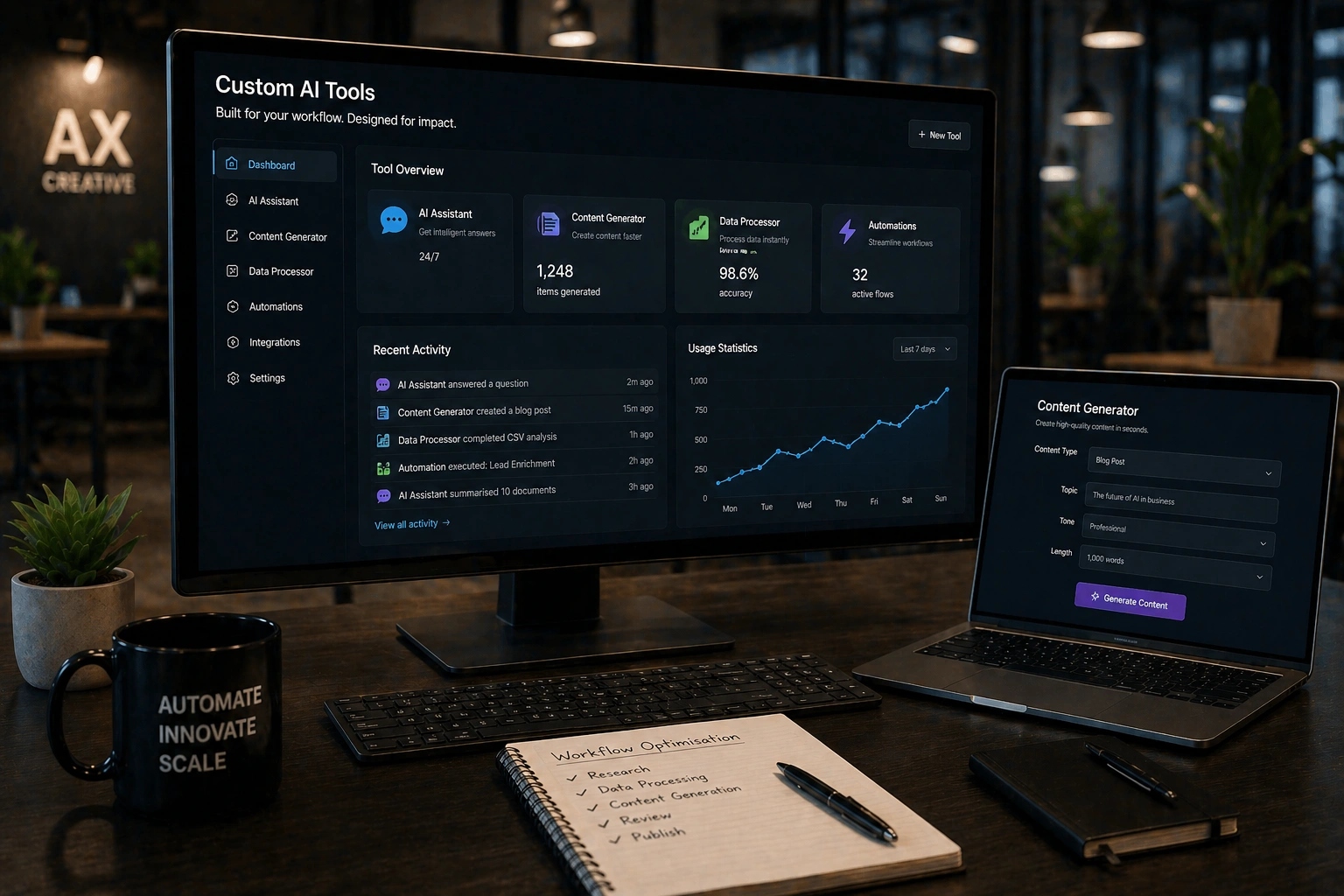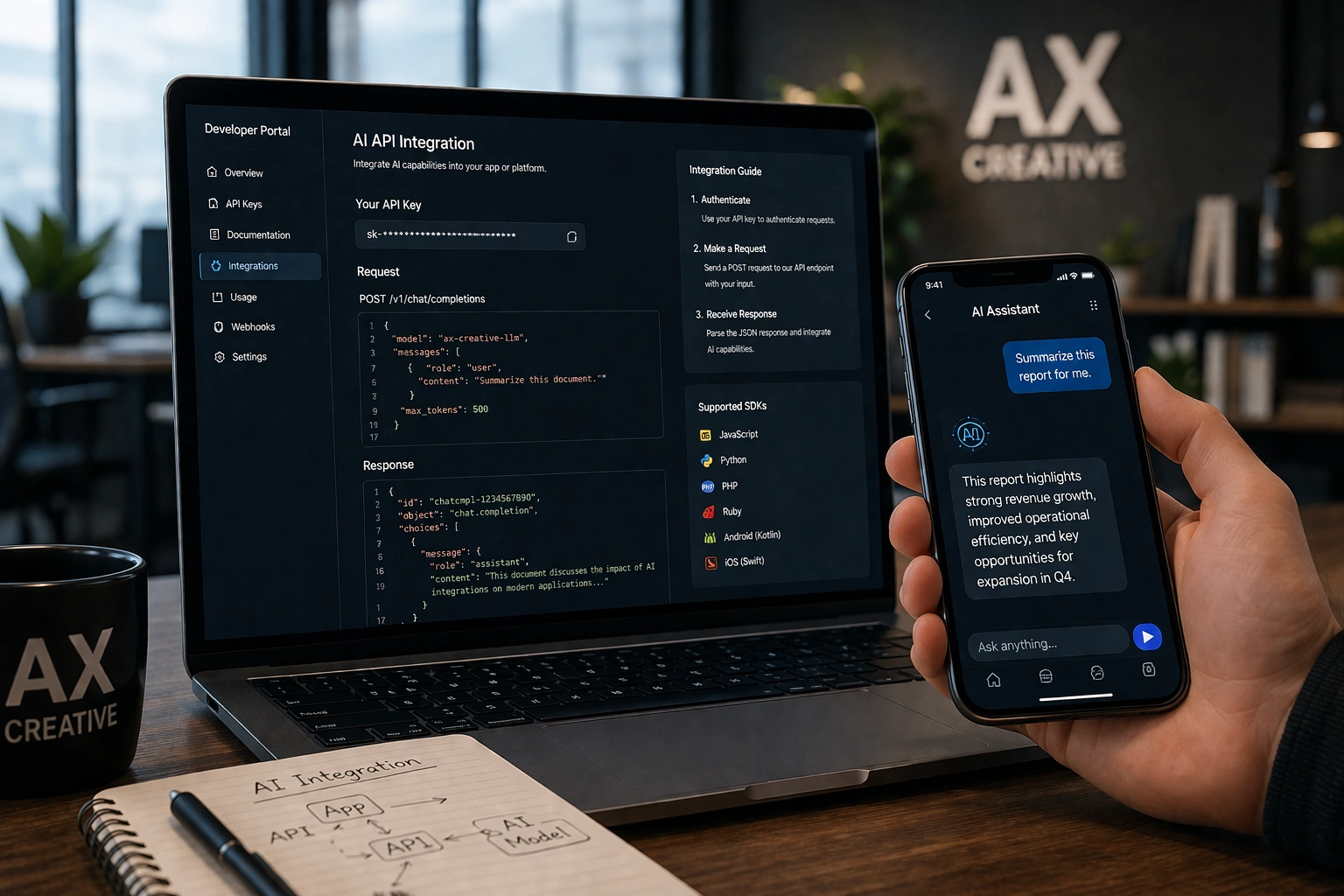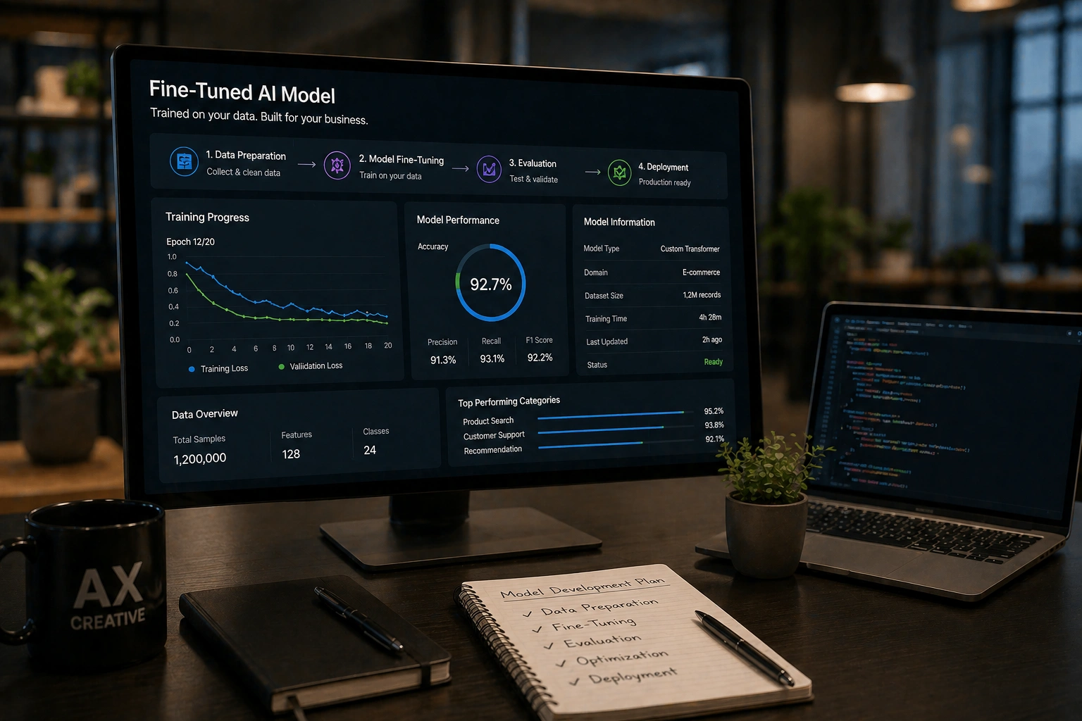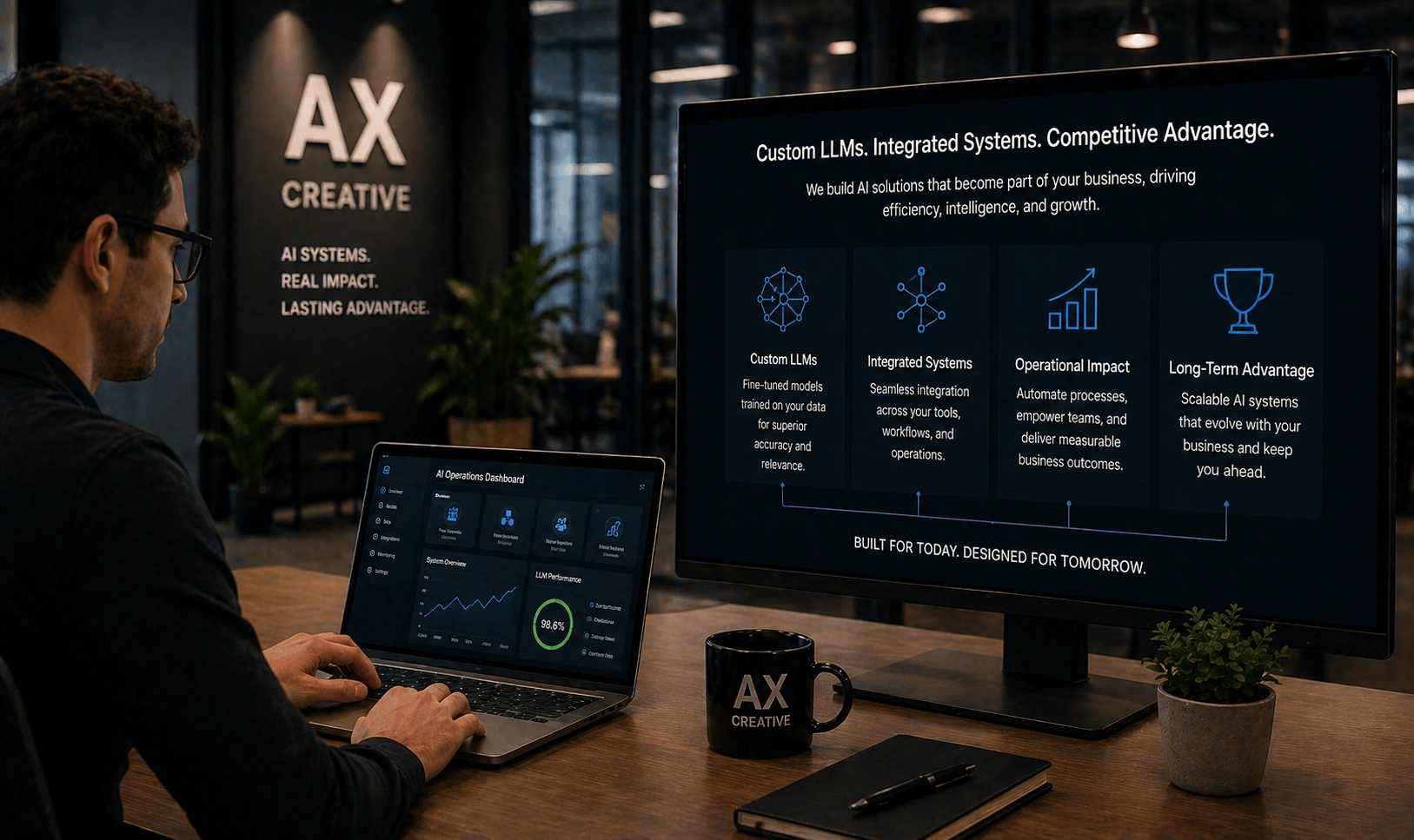 Partner with AX Creative to build custom LLMs and AI systems that integrate deeply into your operations and create long-term competitive advantage.