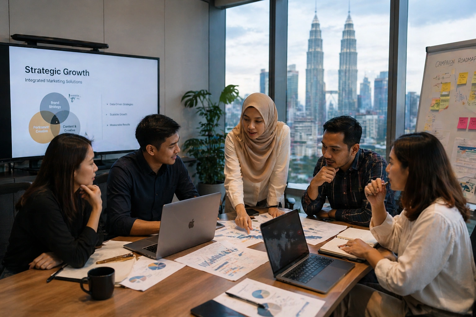 Brand strategy, content production, digital marketing, SEO, social media, PR and website design — adapted for Malaysian market context and delivered as an integrated embedded partnership.
